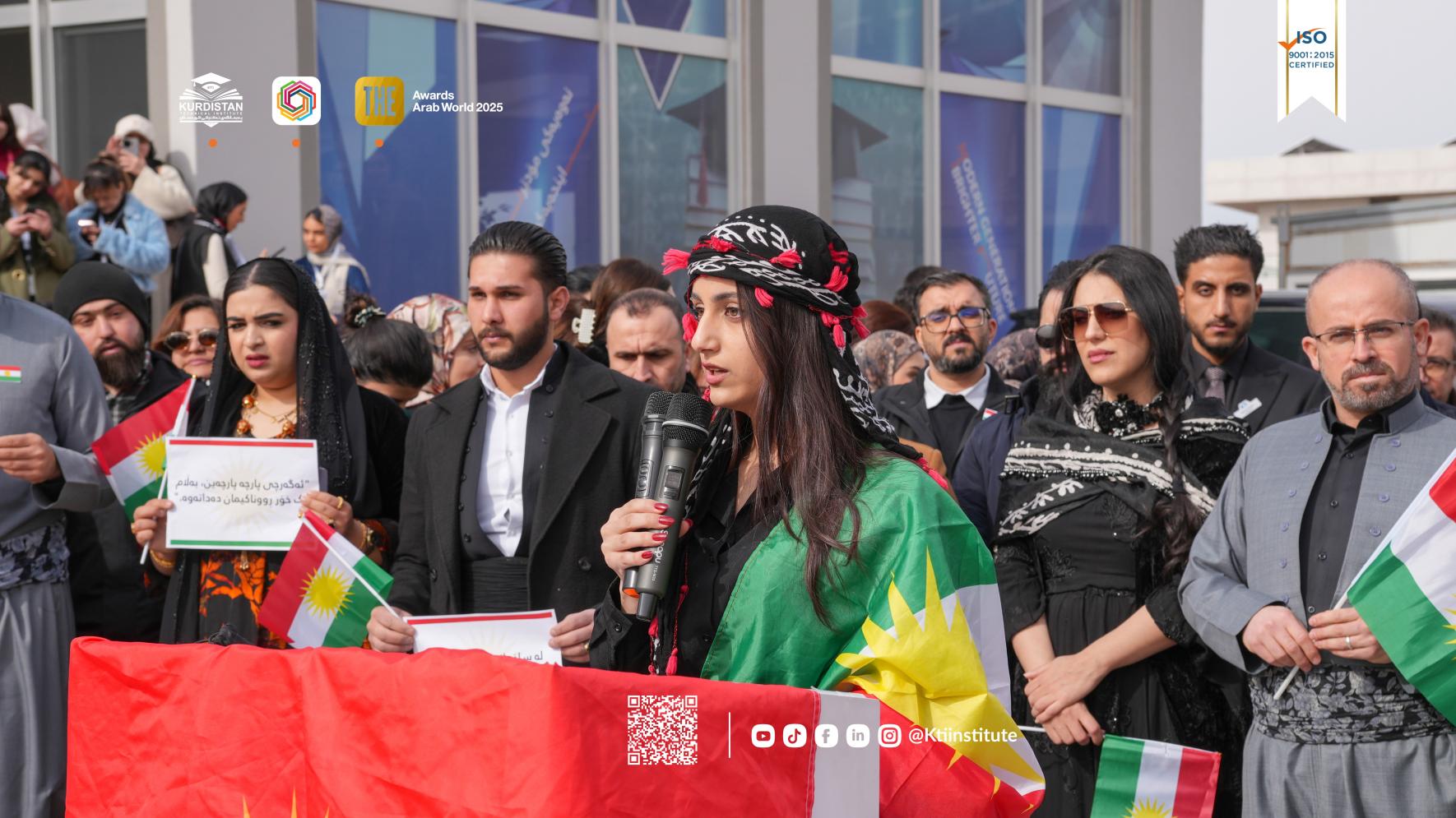Various items were presented at the event, which aimed to show national unity and support the legitimate struggle of the West against the occupation. At the beginning of the ceremony, Prof. Rebwar Mullah Nabi, Dean of the Institute, delivered a speech in which he highlighted the importance of the role of academic centers in raising awareness of the new generation towards the legitimate Kurdish cause.