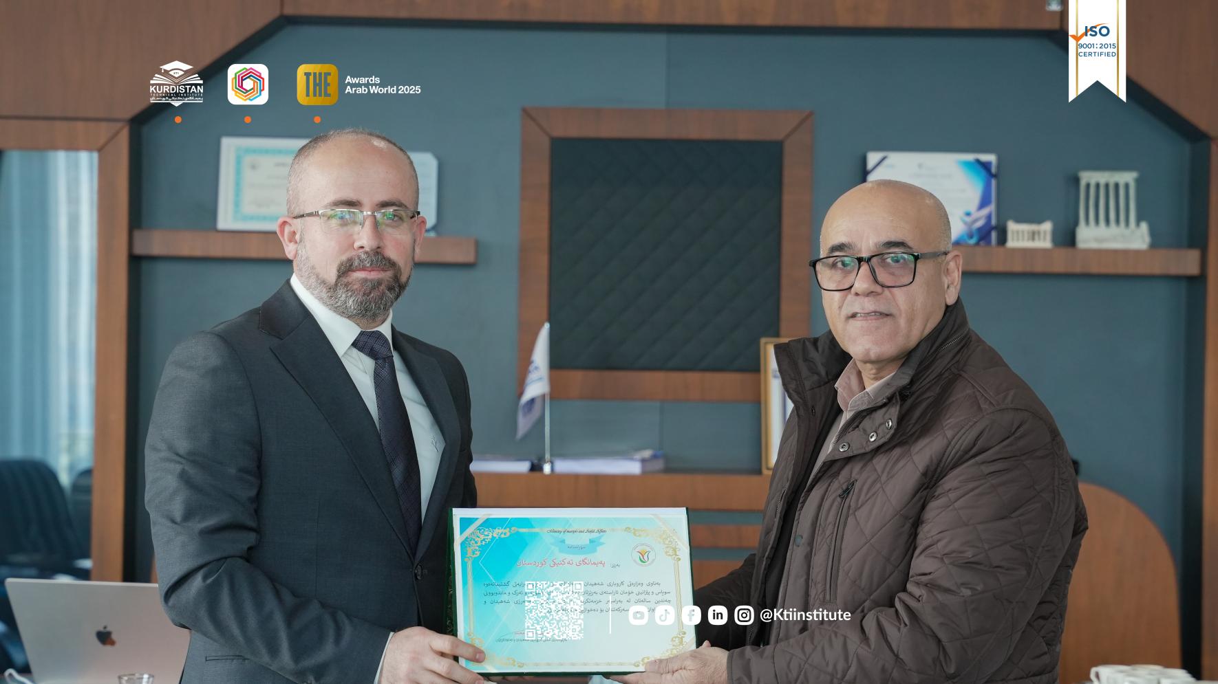 The Director General of Martyrs and Anfal Affairs, accompanied by a formal delegation, visited the Kurdistan Technical Institute (KTI).