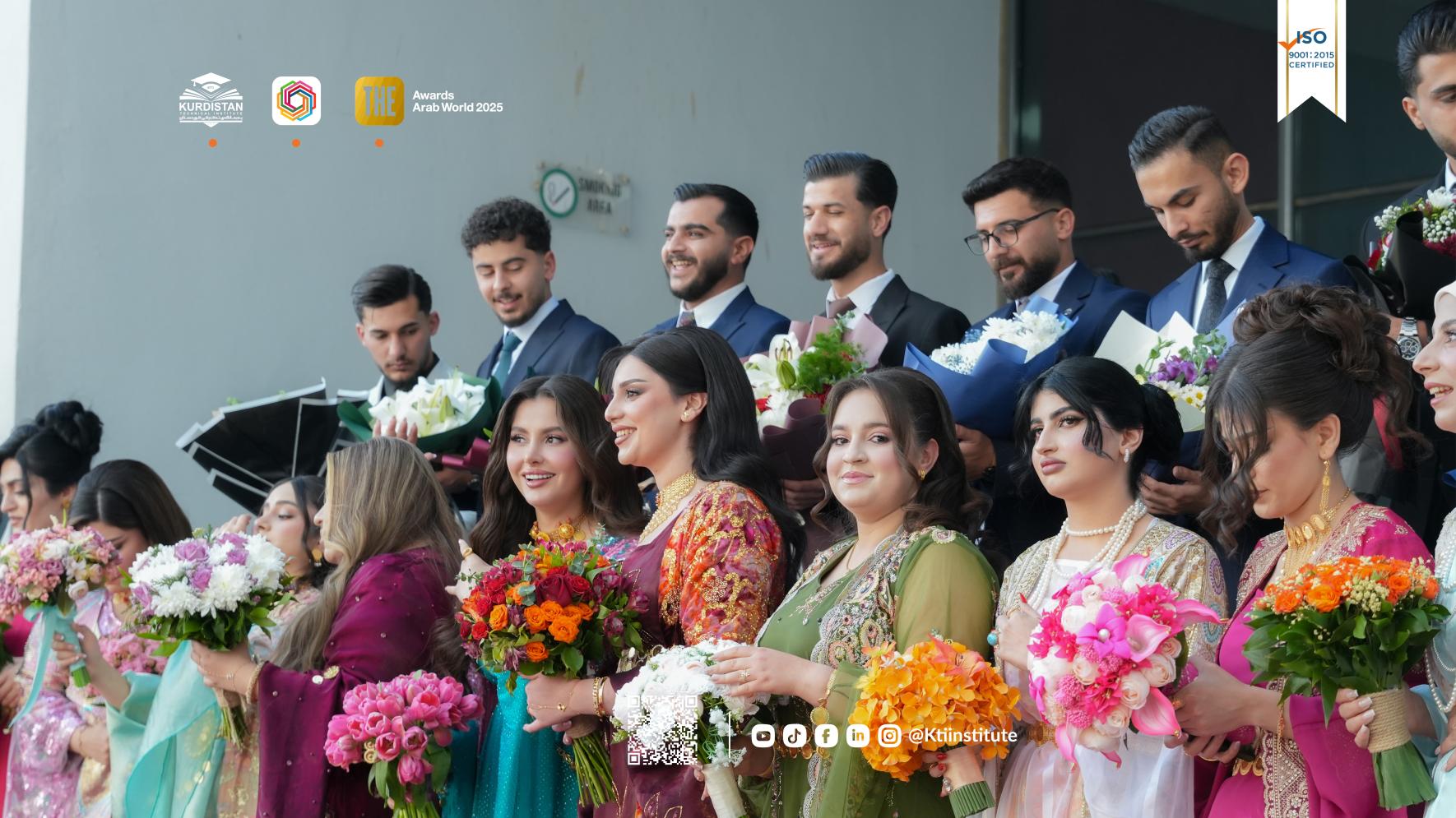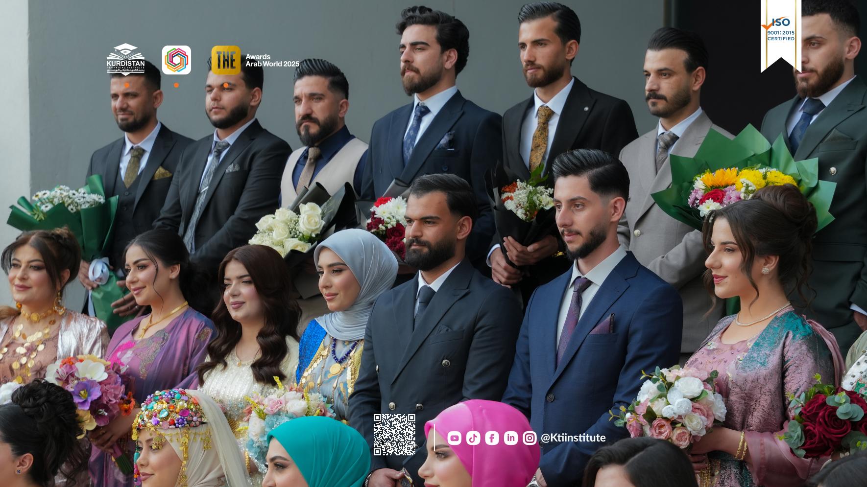 Heritage and knowledge in one frame. KTI students celebrating graduation day in traditional Kurdish outfits.