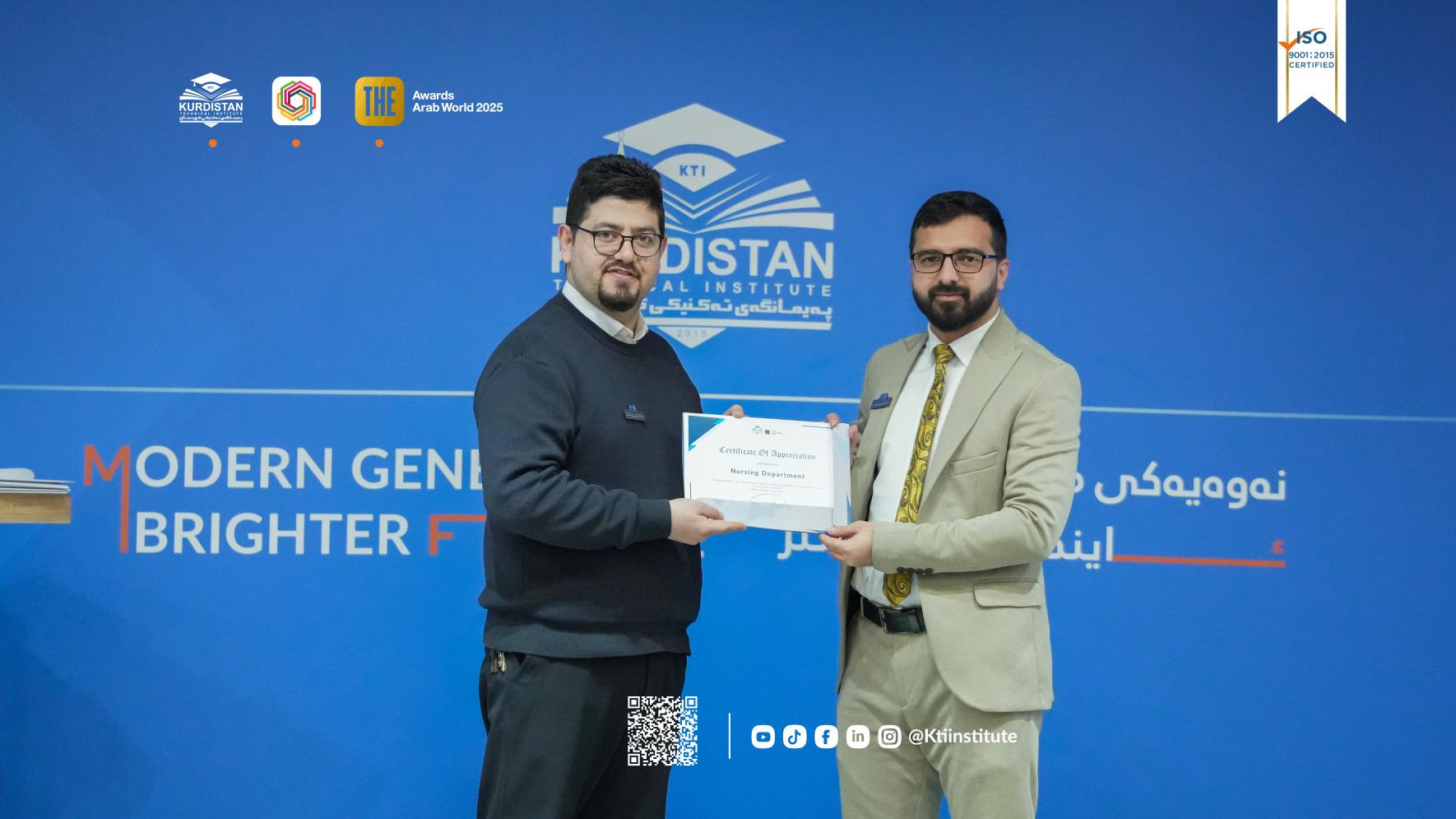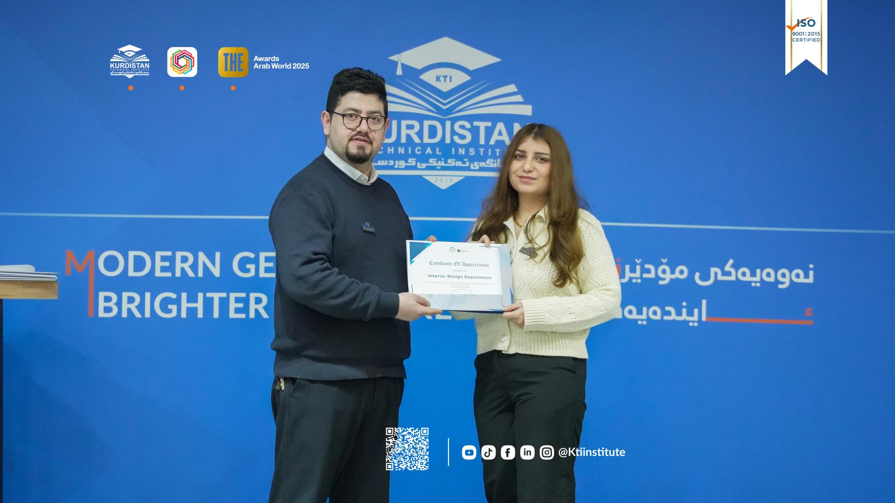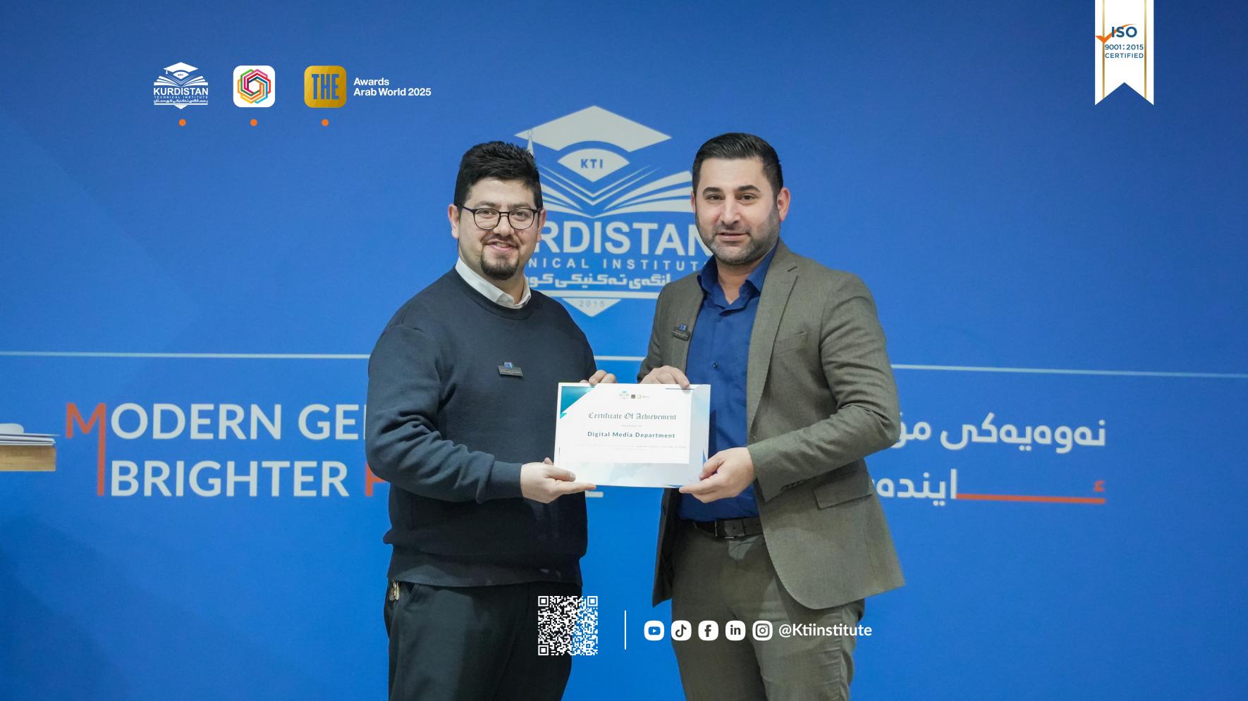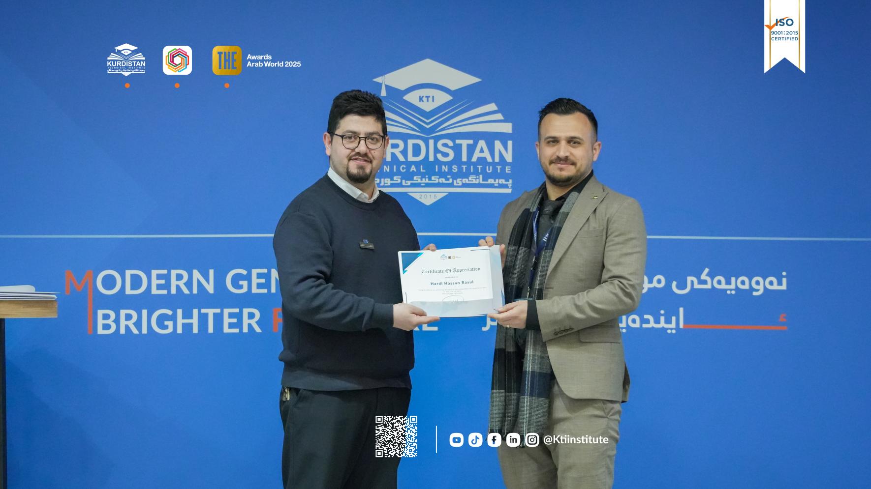 (٥ی شوباتی ٢٠٢٦) لە مەراسیمێکدا بە ئامادەبوونی پ.ی.د. ڕێبوار ملا نبی، ڕاگری پەیمانگەی تەکنیکی کوردستان و ئەندامانی ئەنجومەنی پەیمانگە و مامۆستایان و فەرمانبەران، مەراسیمی ساڵانەی ڕێزلێنان لە ستافی زانستی و ئەکادیمی پەیمانگە بەڕێوەچوو.