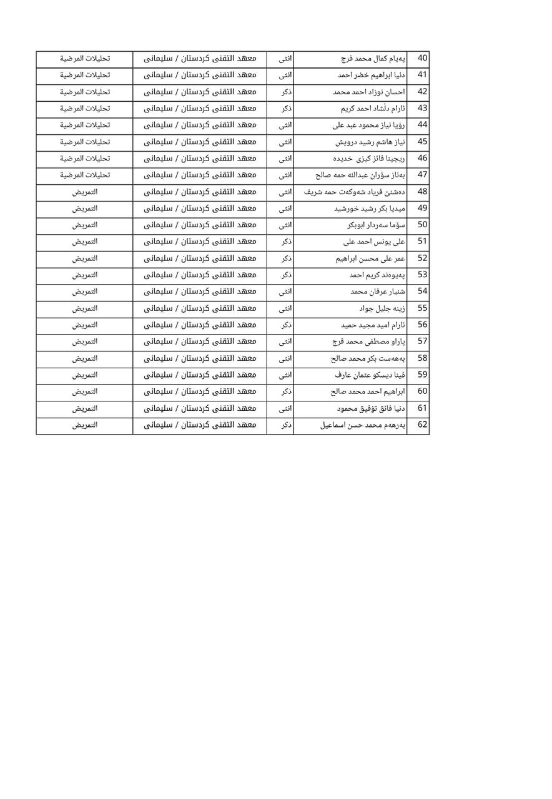 1- Those names that are on this list and whose national ID cards are from outside the Kurdistan Region must send a photo of their national ID card via Viber to this number 077018321817 by Sunday.