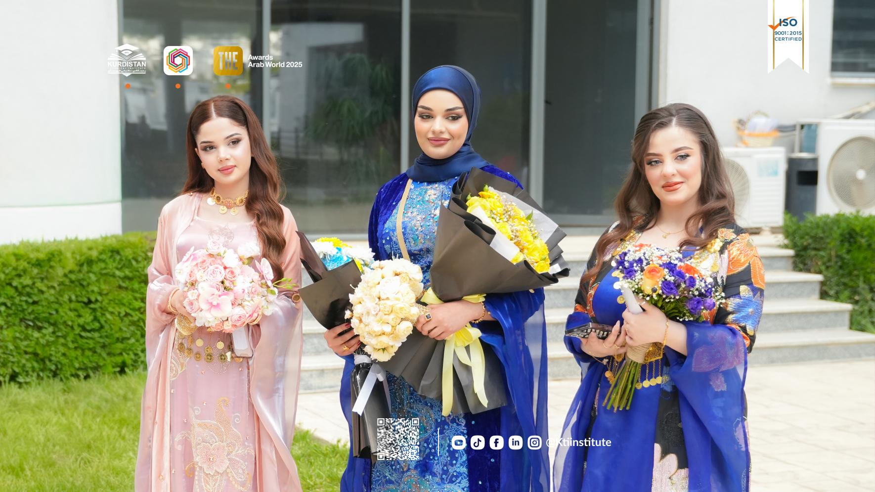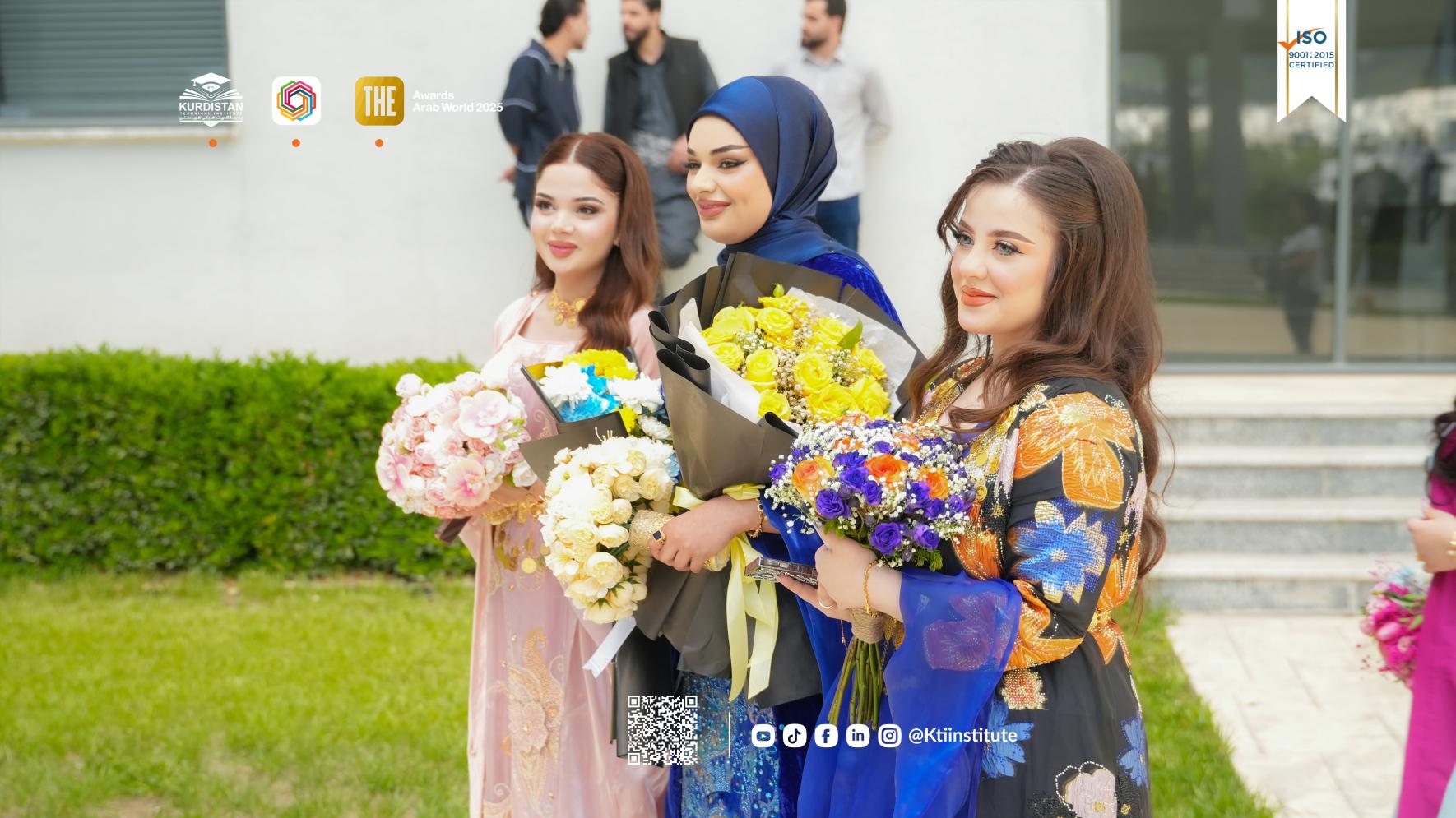 Heritage and knowledge in one frame. KTI students celebrating graduation day in traditional Kurdish outfits.