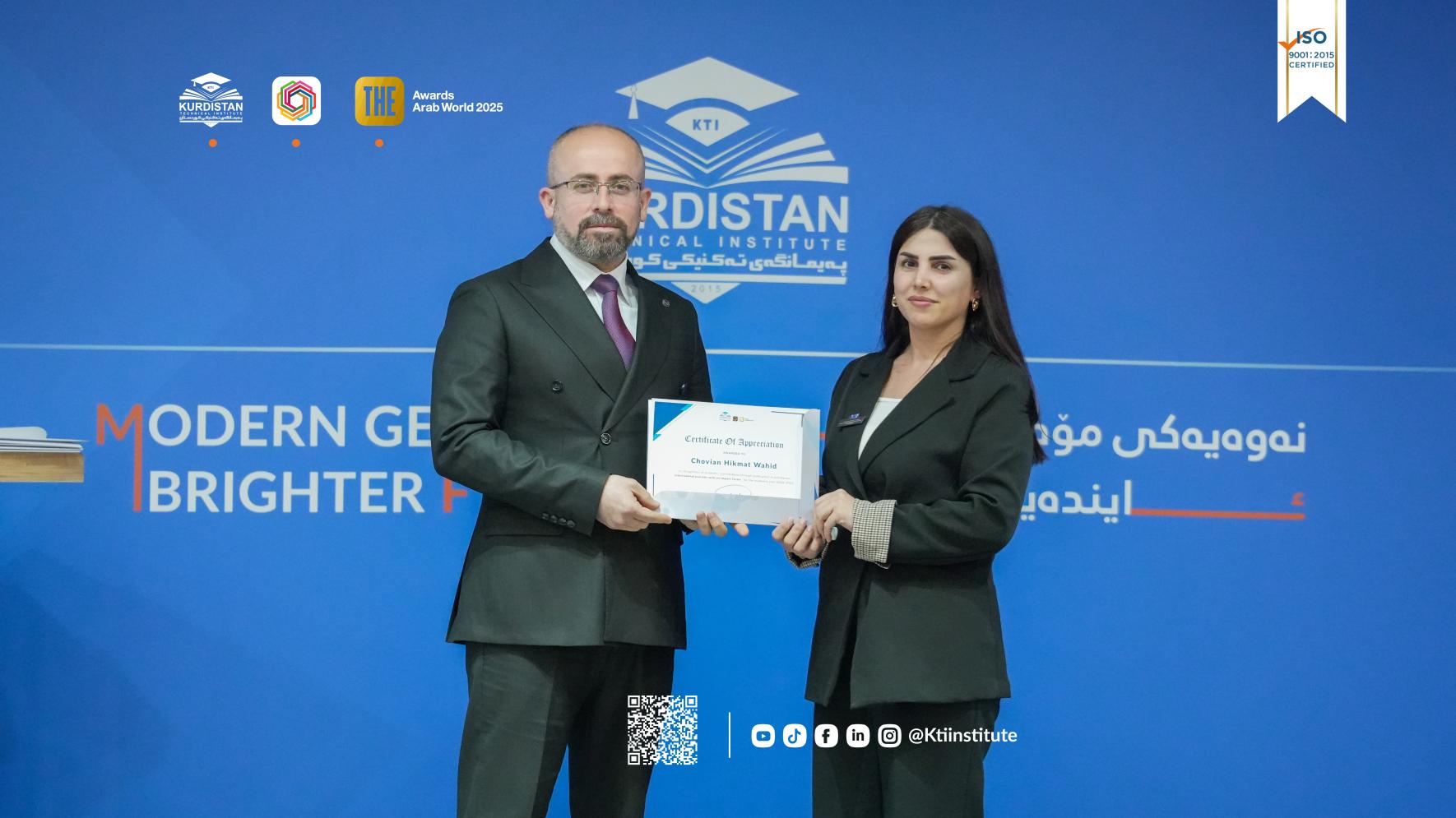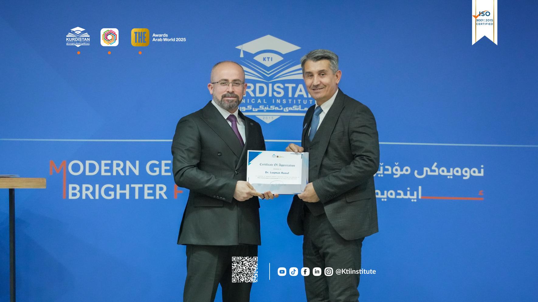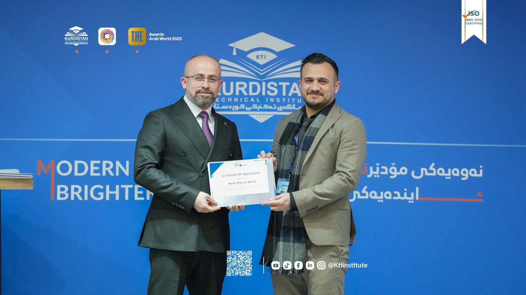 ئەمڕۆ(٥ی شوباتی ٢٠٢٦) لە مەراسیمێکدا بە ئامادەبوونی پ.ی.د. ڕێبوار ملا نبی، ڕاگری پەیمانگەی تەکنیکی کوردستان و ئەندامانی ئەنجومەنی پەیمانگە و مامۆستایان و فەرمانبەران، مەراسیمی ساڵانەی ڕێزلێنان لە ستافی زانستی و ئەکادیمی پەیمانگە بەڕێوەچوو.